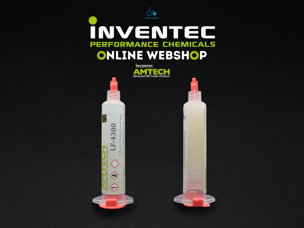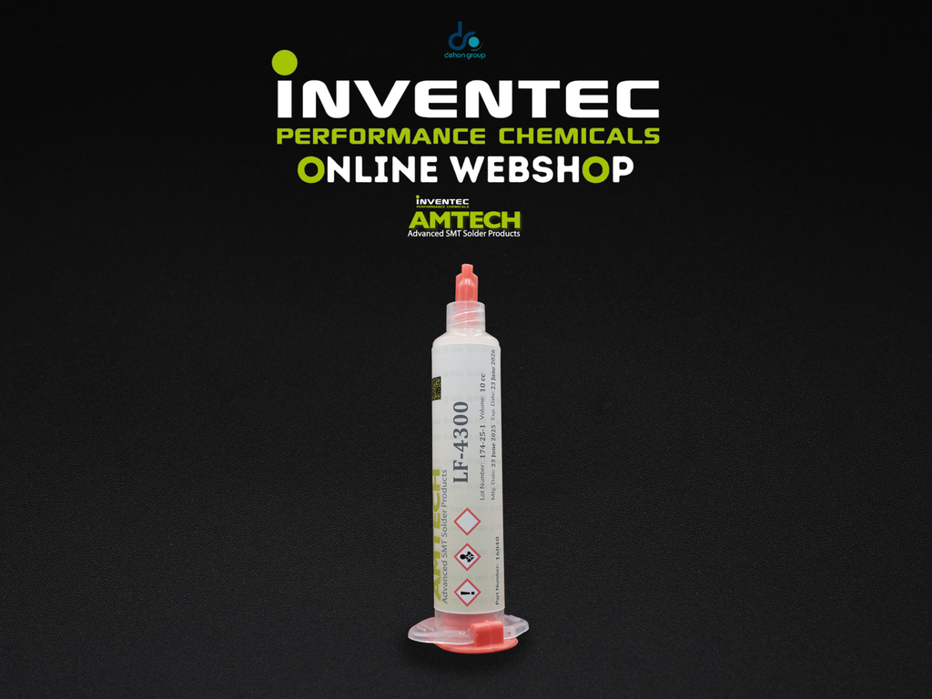 4300/LF-4300-TF is a water washable tacky flux that can be left on the board for many SMT assemblies. For applications requiring cleaning, 4300/LF-4300-TF can be cleaned using di-ionized water at 40-60 o C with a recommended water pressure of 30-50 PSI. 4300/LF-4300-TF can also be cleaned using commercially available flux residue removers such INVENTEC Promoclean™ and Promosolv™ cleaning chemistries