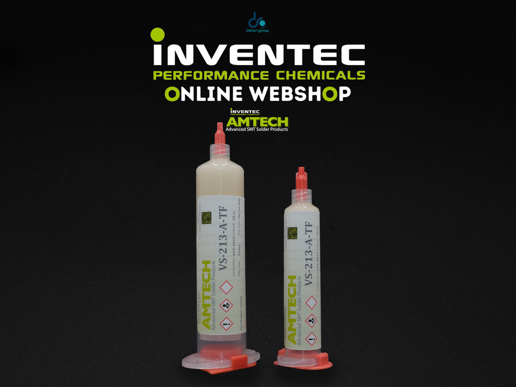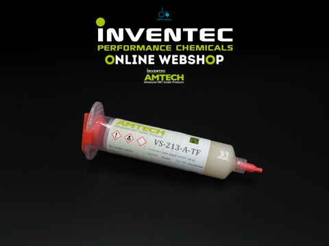 VS-213A-TF is a no clean tacky flux that can be left on the board for many SMT assemblies. For applications requiring cleaning, VS-213A-TF can be cleaned using commercially available flux residue removers such as INVENTEC Promoclean™and Promosolv™ cleaning solvents.